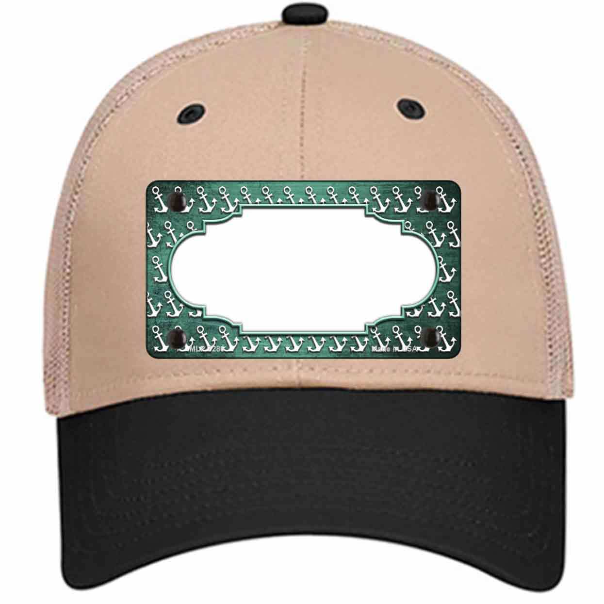 Mint White Anchor Scallop Oil Rubbed Novelty Khaki Mesh License Plate Hat