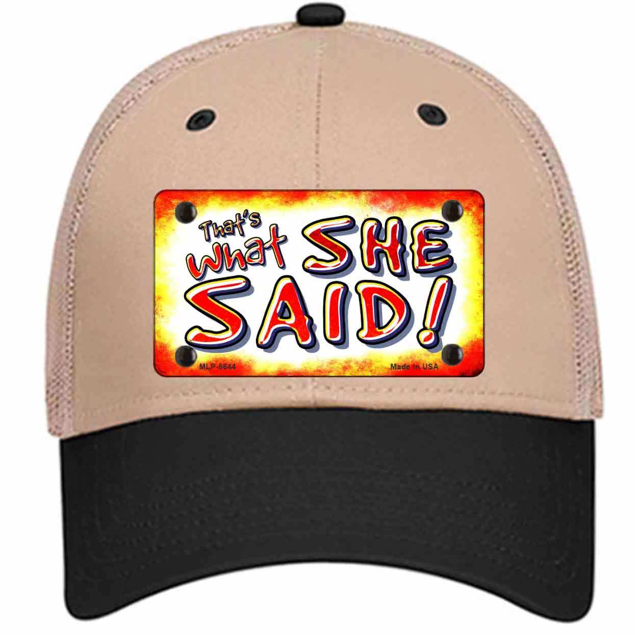 Thats What She Said Novelty Khaki Mesh License Plate Hat
