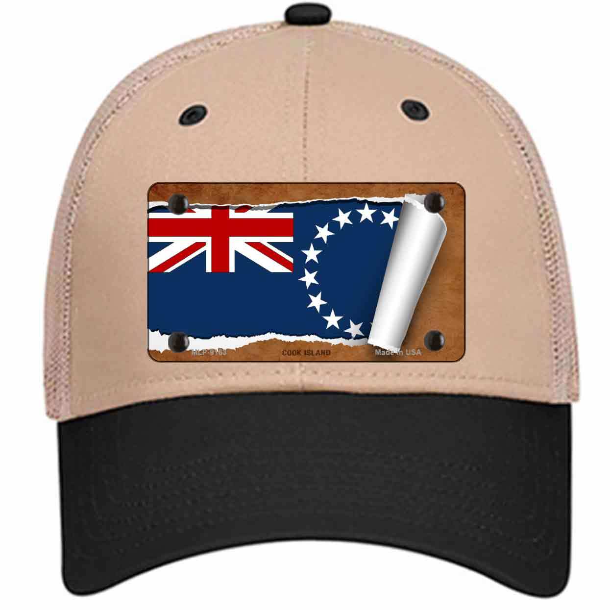 Cook Island Flag Scroll Novelty Khaki Mesh License Plate Hat