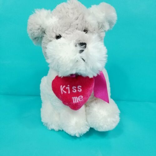 Valentine Day Kiss Me Heart Plush Scottish Terrier Grey White Dog Stuffed 10"