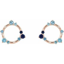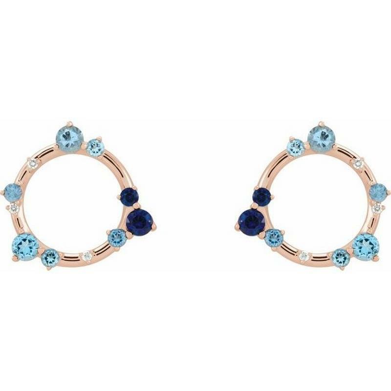 14k Rose Gold Blue Multi-Gemstone and Diamond Circle Earrings