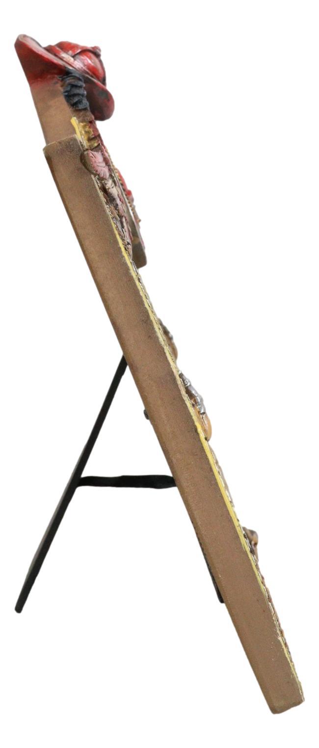 ? This Fire Department Patriotic Picture Frame is made of polyresin, hand painted and polished individually. It is equipped with easel back for table top or shelf display. You can also hang this picture frame on your walls.