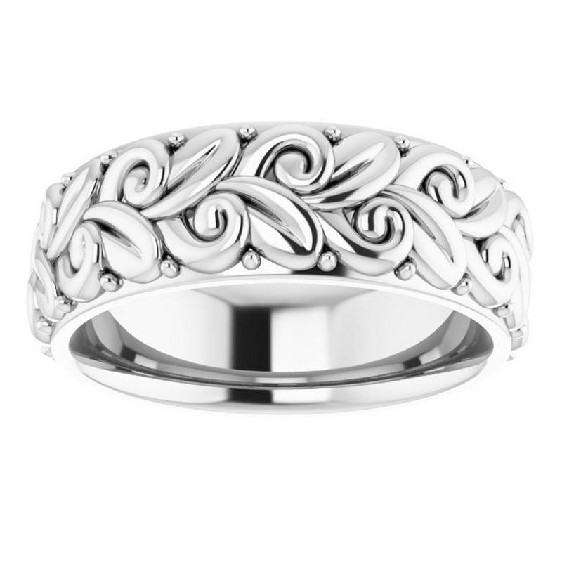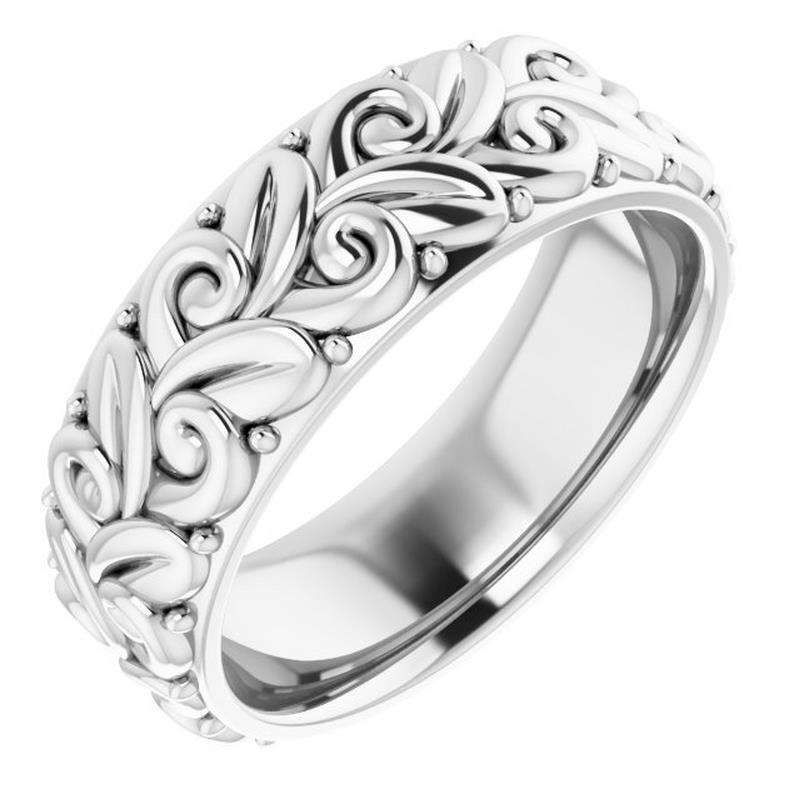 18K White Gold 5 MM Floral Ladies Comfort-Fit Wedding Band