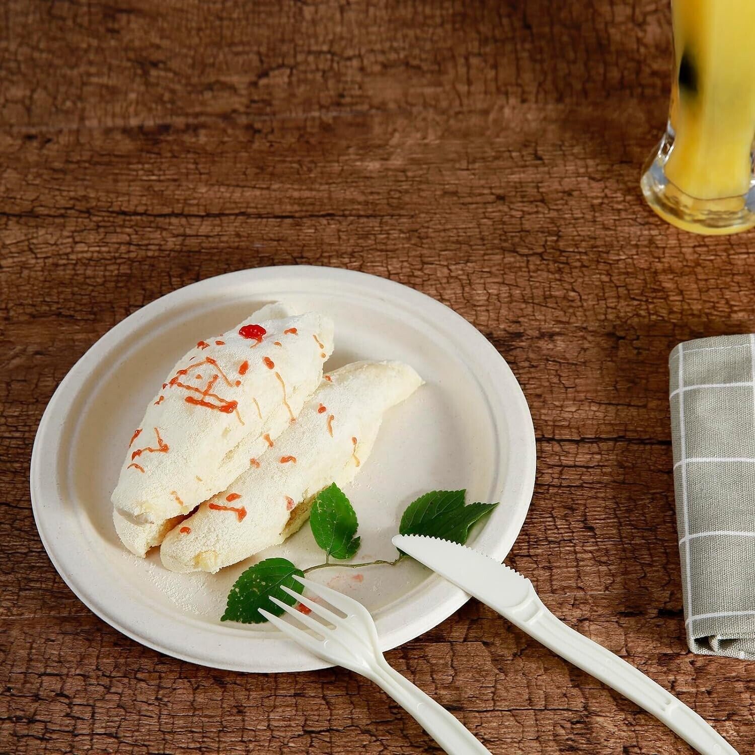 Versatile: Compostable food plates can be used for many different things, like meal, bread, sandwich, salad, cake, ice cream, steak, cat's meals, baked potatoes and spaghetti dinners. Works well for picnic, cookouts, camping. Ideal disposable dinnerware, paper plates heavy duty and food trays disposable.