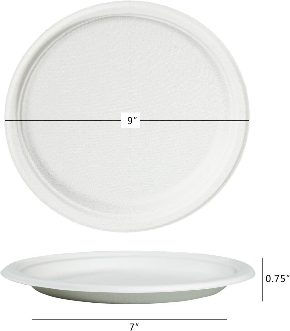 Perfect Size: 500-pack of 9x0.75 inches round biodegradable plates. Perfect lunch plates disposable heavy duty.