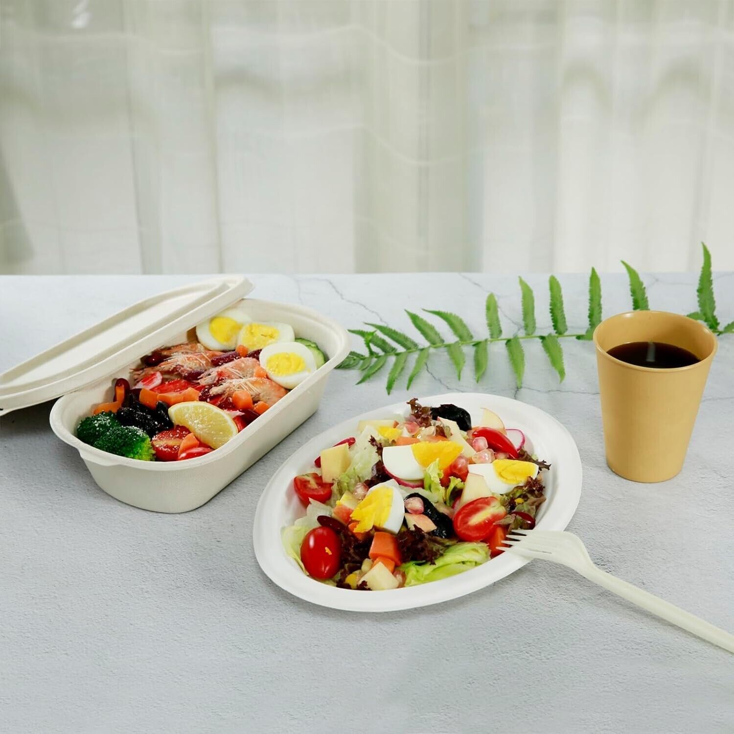 Eco-friendly: Disposable lunch plate is made from reusable sugarcane fiber, BPA free, would be good for preserving nature. It allows them to be microwaved, which doesn't work for foam ones. Perfect biodegradable plates and disposable plates bulk.