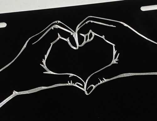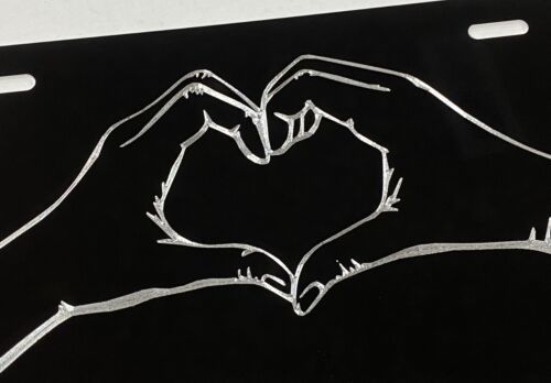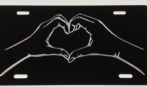 Engraved Heart Hands Emoji Sign Car Tag Diamond Etched Black Metal License Plate