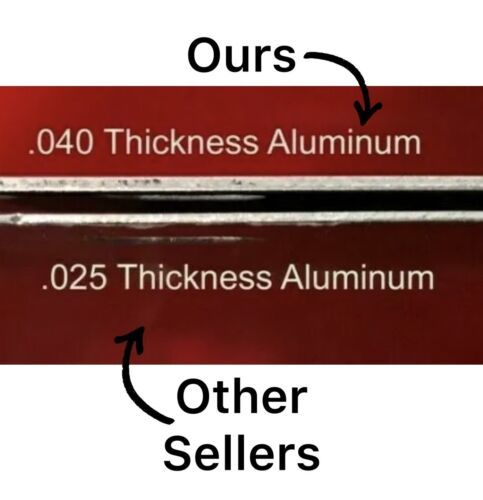 We use only the highest quality aluminum for our plates. They are weatherproof, rust proof and made from .040 aluminum. Most sellers sell .025, ours are almost twice as thick and able to withstand the harshest of road conditions. We are so confident in the quality of our product that we offer a 3 year manufacturer warranty!