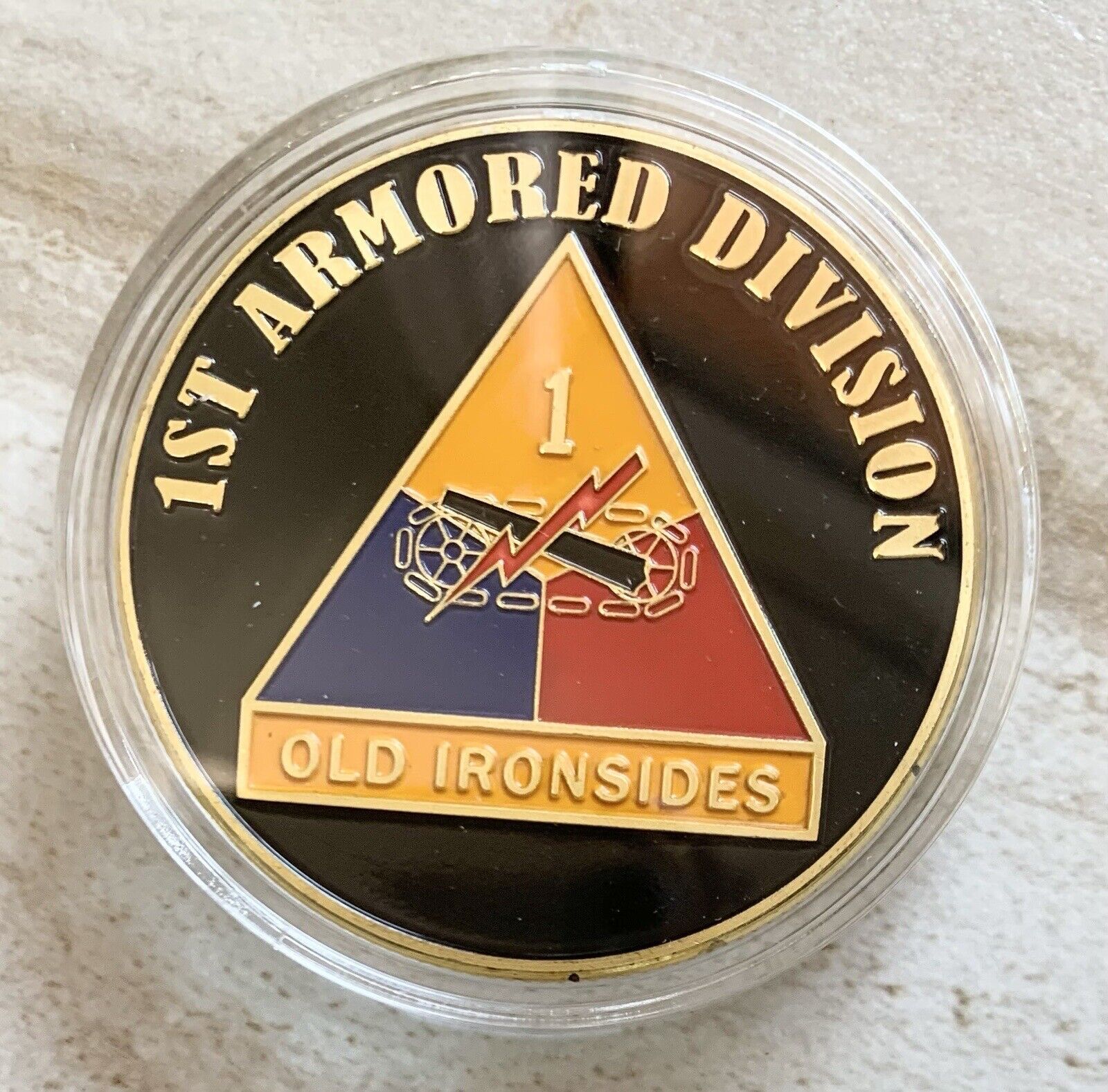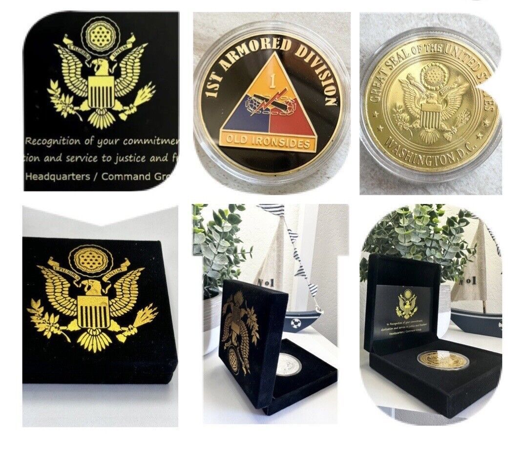 US ARMY 1st ARMORED DIVISION "Hell On Wheels" Challenge Coin With Velvet Case