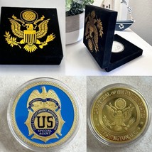 This is a great looking US Drug Enforcement Administration (DEA) commemorative challenge coin. Coin has reeded edges and is about 1 9/16" in diameter. All details are raised lettering and gold plated. Coin is contained in an acrylic air tight holder and displayed in an attractive blue velvet presentation box which will make this a very impressive gift or presentation.