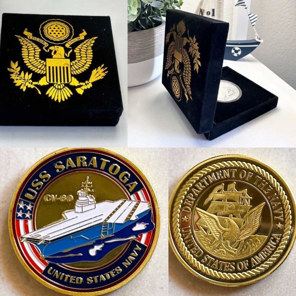 US NAVY - USS SARATOGA - CV-60 - Challenge Coin With Special Velvet Case