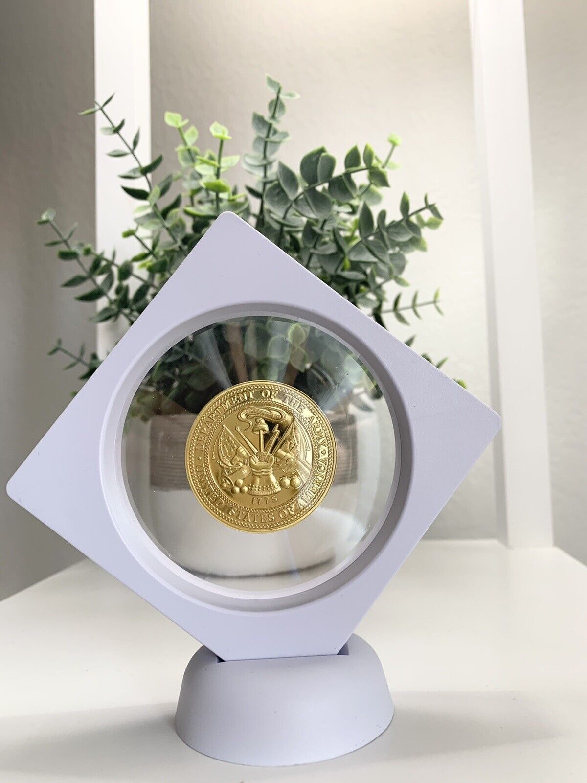 3D Floating Display Case With US Army 25th Infantry Division Challenge Coin