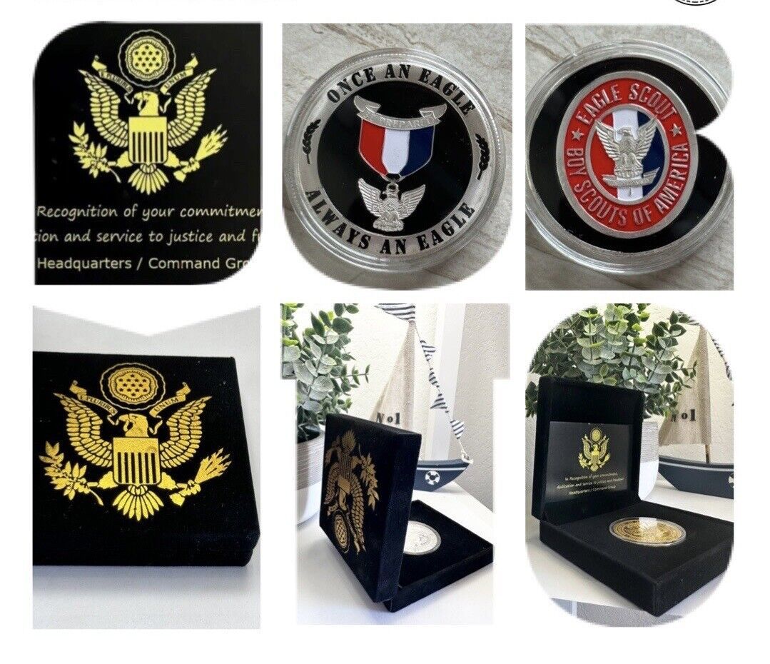 EAGLE SCOUT Challenge Coin Boy Scouts Of America with Special Velvet Case