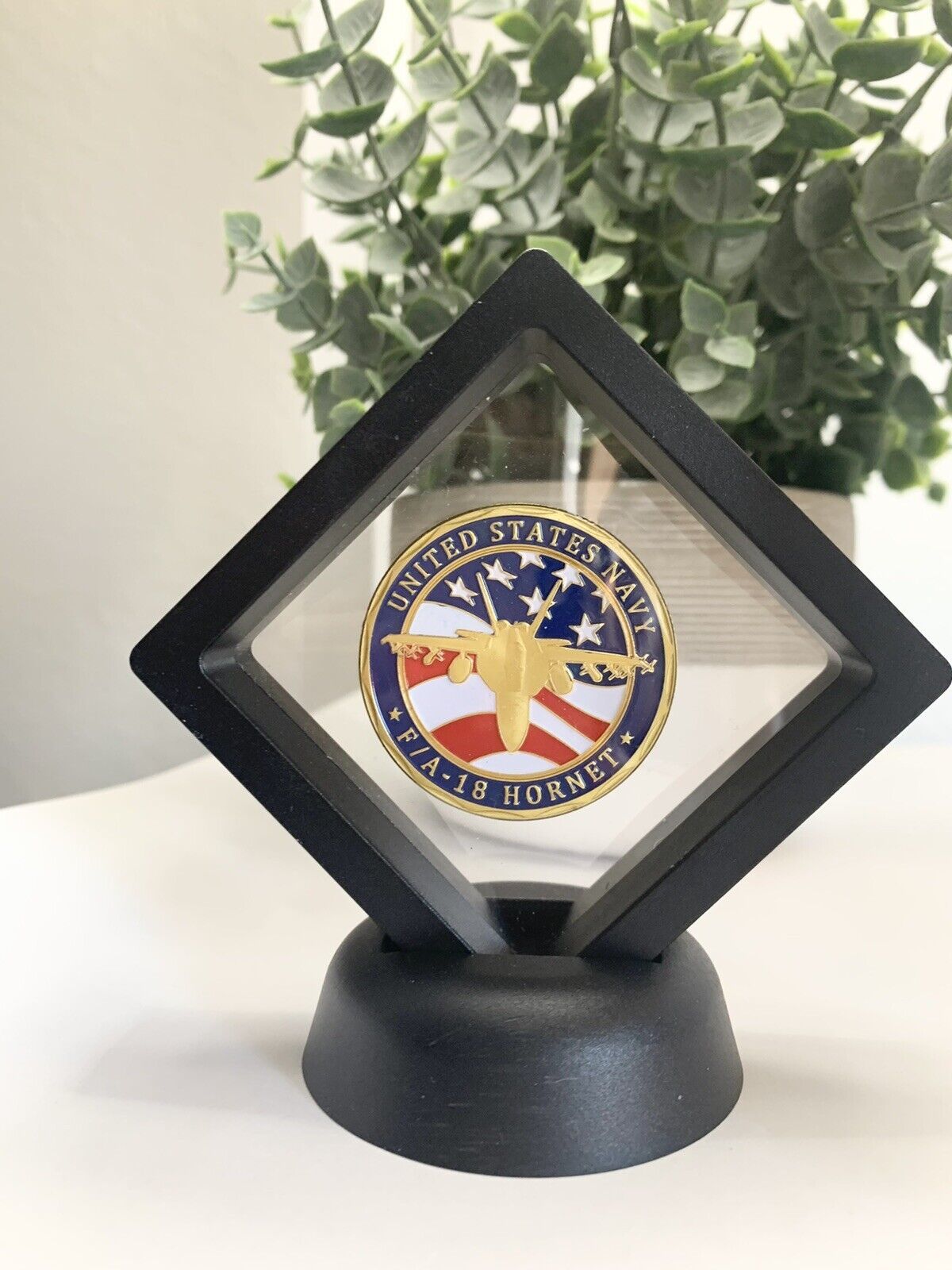F/A-18 Hornet Challenge Coin USN US NAVY With 3D Floating Case.