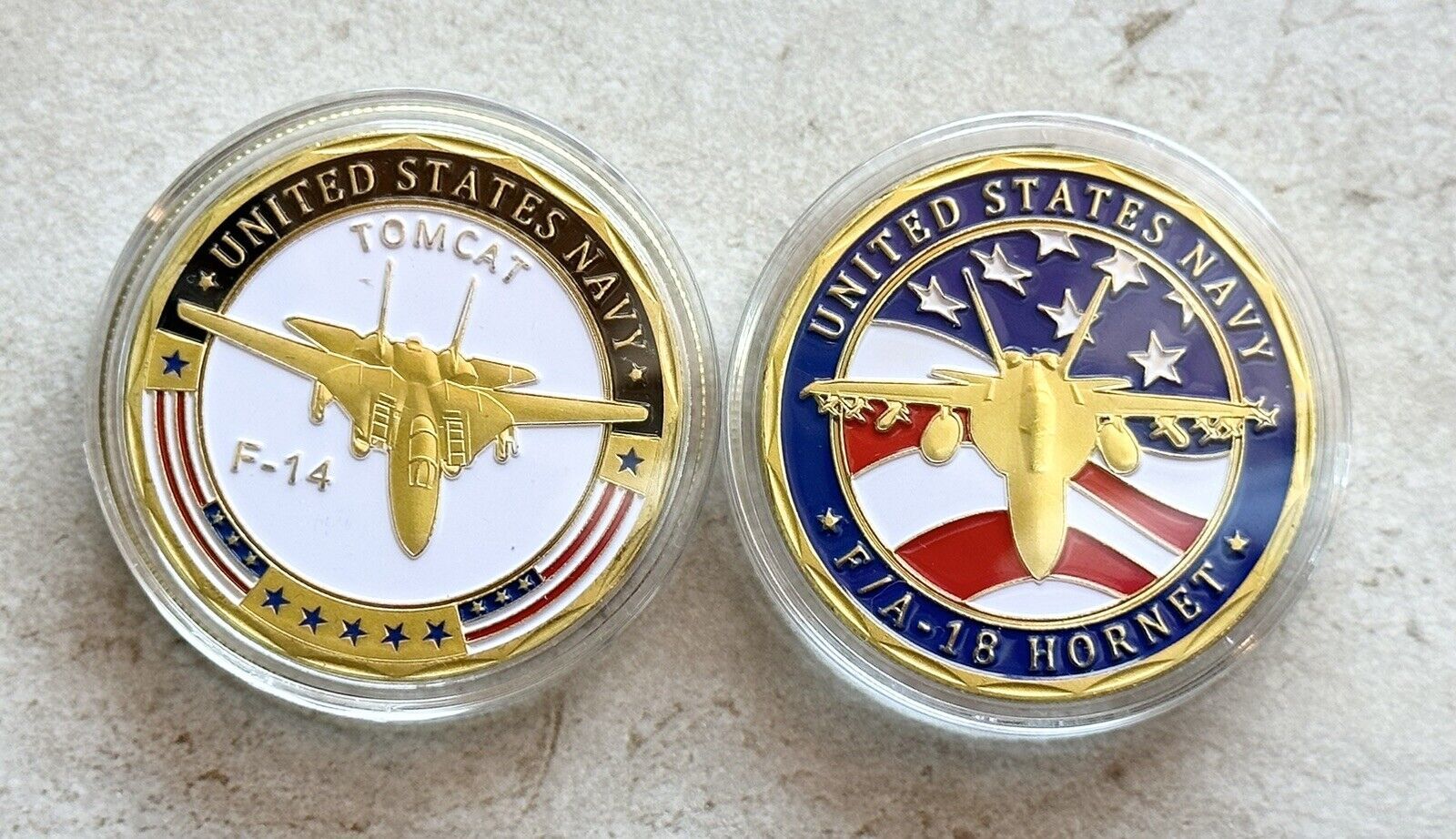 2 Pcs 2 Fighters Aircraft F-14 F-18 collection set Coin USN