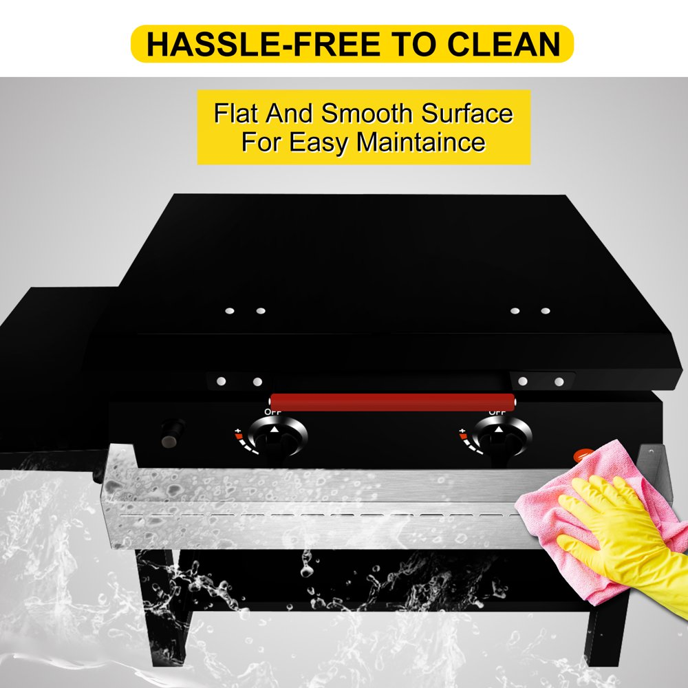 The surface of the front tray shelf for the griddle is too smooth to clean. You can easily clean the dust and oil stains on the shelf's surface just by wiping it with a cleaning cloth. The swept frame is as shiny as the one.
