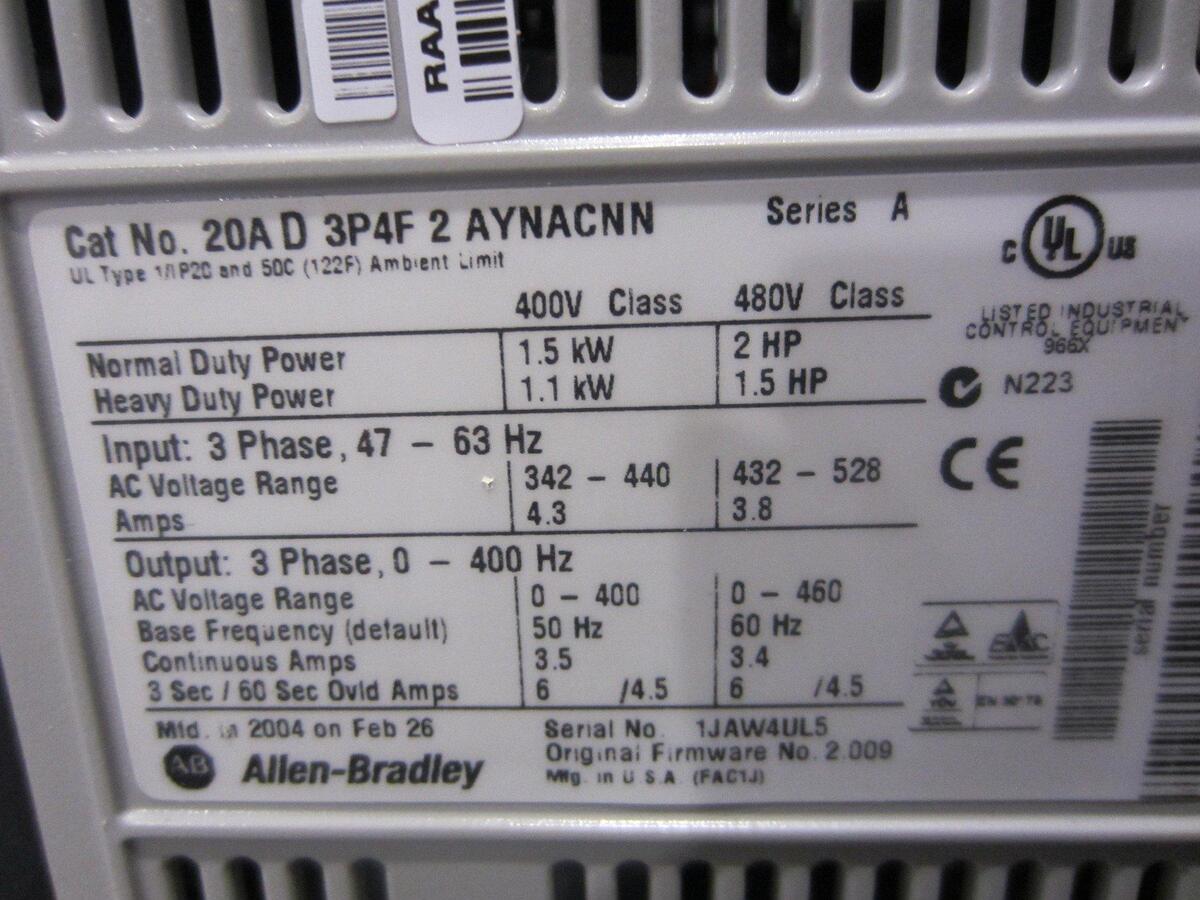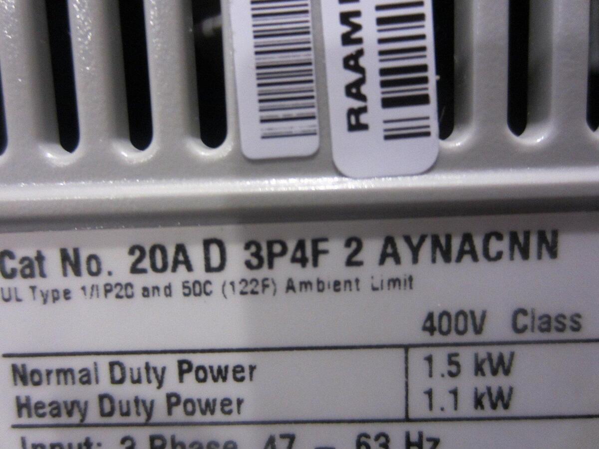 Allen Bradley Drive Cat no. 20A-D-3P4F-2-AYNACNN Series AAdditional Information:PowerFlex 70 3 Phase 47-63 Hz Input, 3 Phase 0-400 Hz Output. At Interscope we know that with today's challenges, equipment maintenance and replacement can be costly; however we have a solution. Through our partnerships and program, we have access to an extensive inventory of new surplus and used components and assemblies that can not only deliver a significant cost savings, but also reduce lead time. We have a complete machine shop and manufacturing, fabrication, and assembly capabilities. We can rebuild assemblies, complete processing lines and other capital equipment at a substantially lower cost than new. In addition, we are always looking to purchase surplus and liquidated equipment. Let us bid on the equipment that you no longer want and/or need.