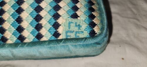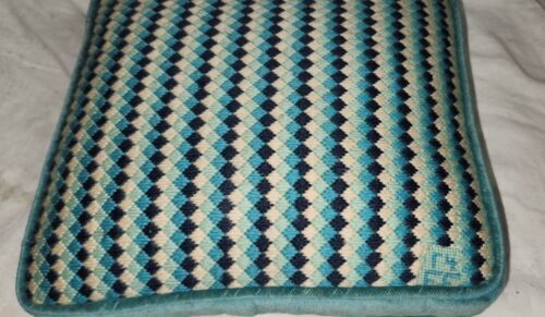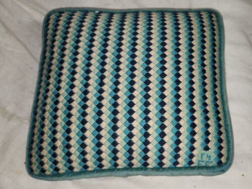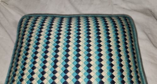 Vintage Funky Square 12x11 Inch Throw Pillow Mini Boxes Blues Handmade MCM Qbert