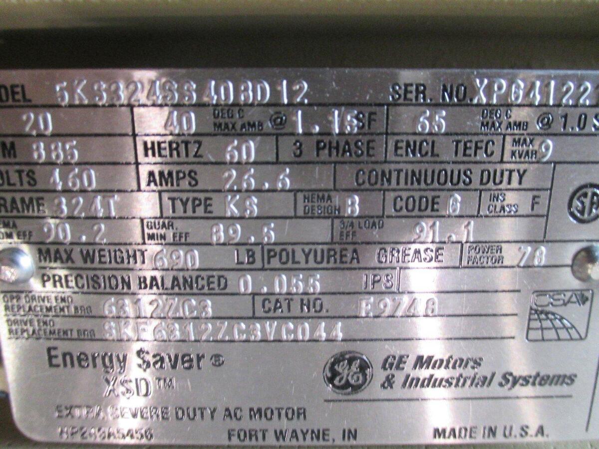 General Electric 5KS324SS408D12 Extra Severe Duty AC Motor, 20HP Frame 324T
