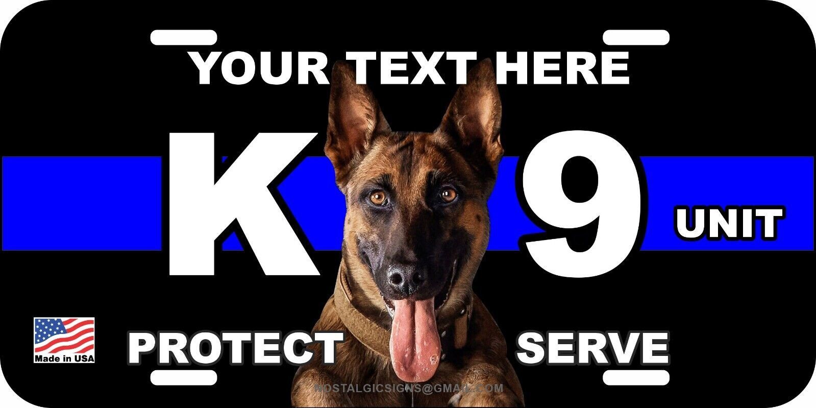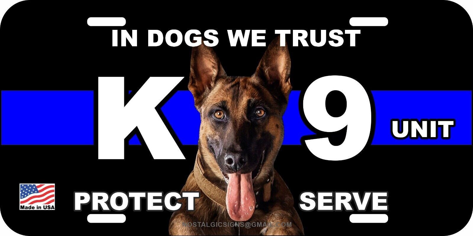 BELGIAN MALINOIS K9 K-9 DOG POLICE IN DOGS WE TRUST ALUMINUM METAL LICENSE PLATE