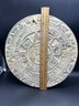 This beautiful plaque is a Pre-Columbian reproduction of the Aztec Inca Maya. Item No. 407 Weight 3 Lb. Dimensions Wide: 8.25" High: 8.75" Deep: 1.25" Made of cast stone with gold finish, comes with a hole or a hook in the back for easy wall hanging. Also available in antique finish and gold and silver.