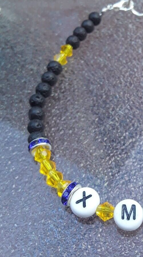 Tap into your own Mutant Powers with this Lava Stone and Yellow Crystal handmade bracelet. Strung on silver beading wire, this bracelet features the classic X-Men uniform colors. Closes with a silver-colored lobster clasp and O ring. Measures 7 1/2 inches should fit most.