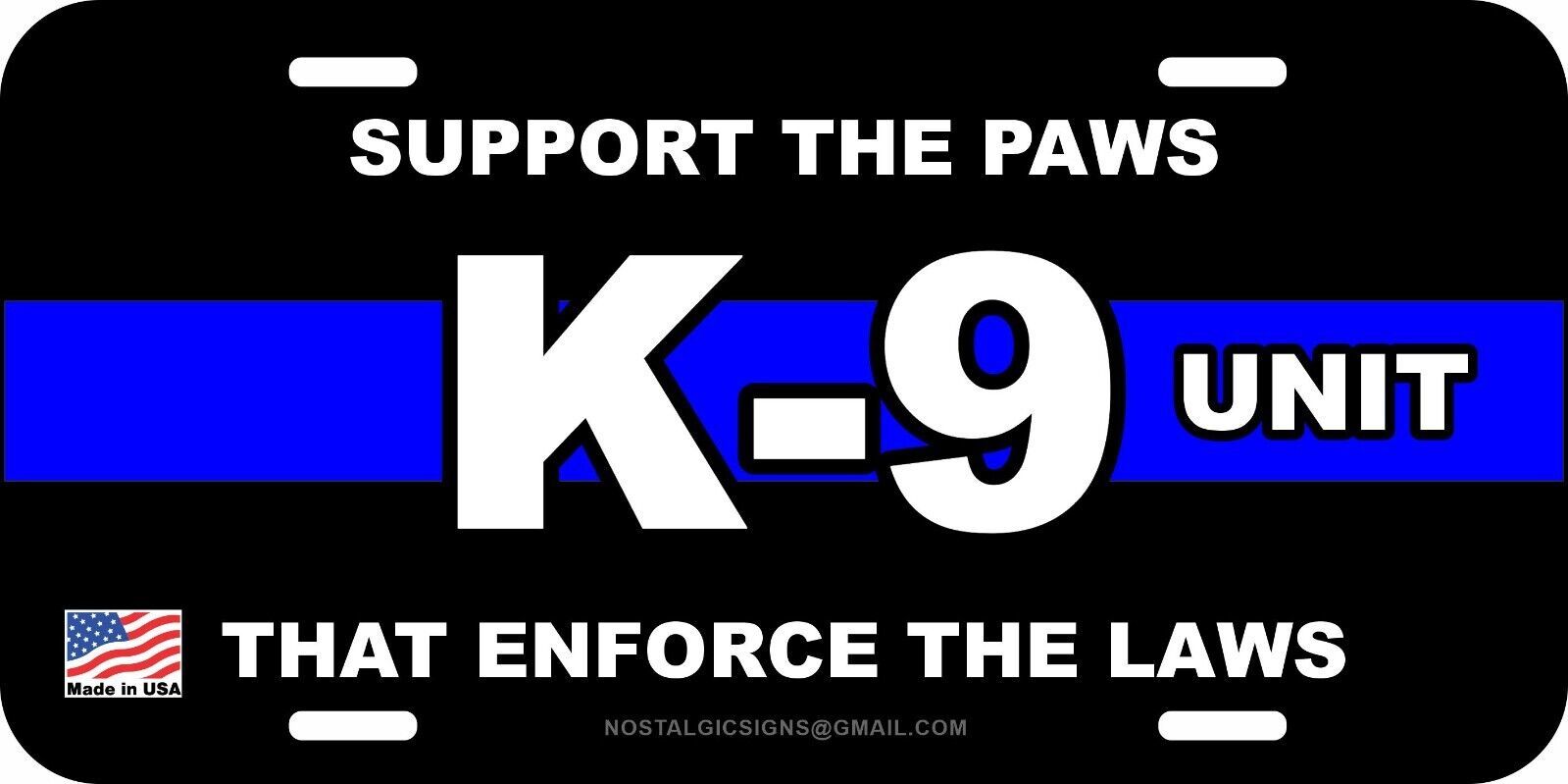 K9 K-9 UNIT DOG POLICE SUPPORT THE PAWS ALUMINUM METAL LICENSE PLATE TAG