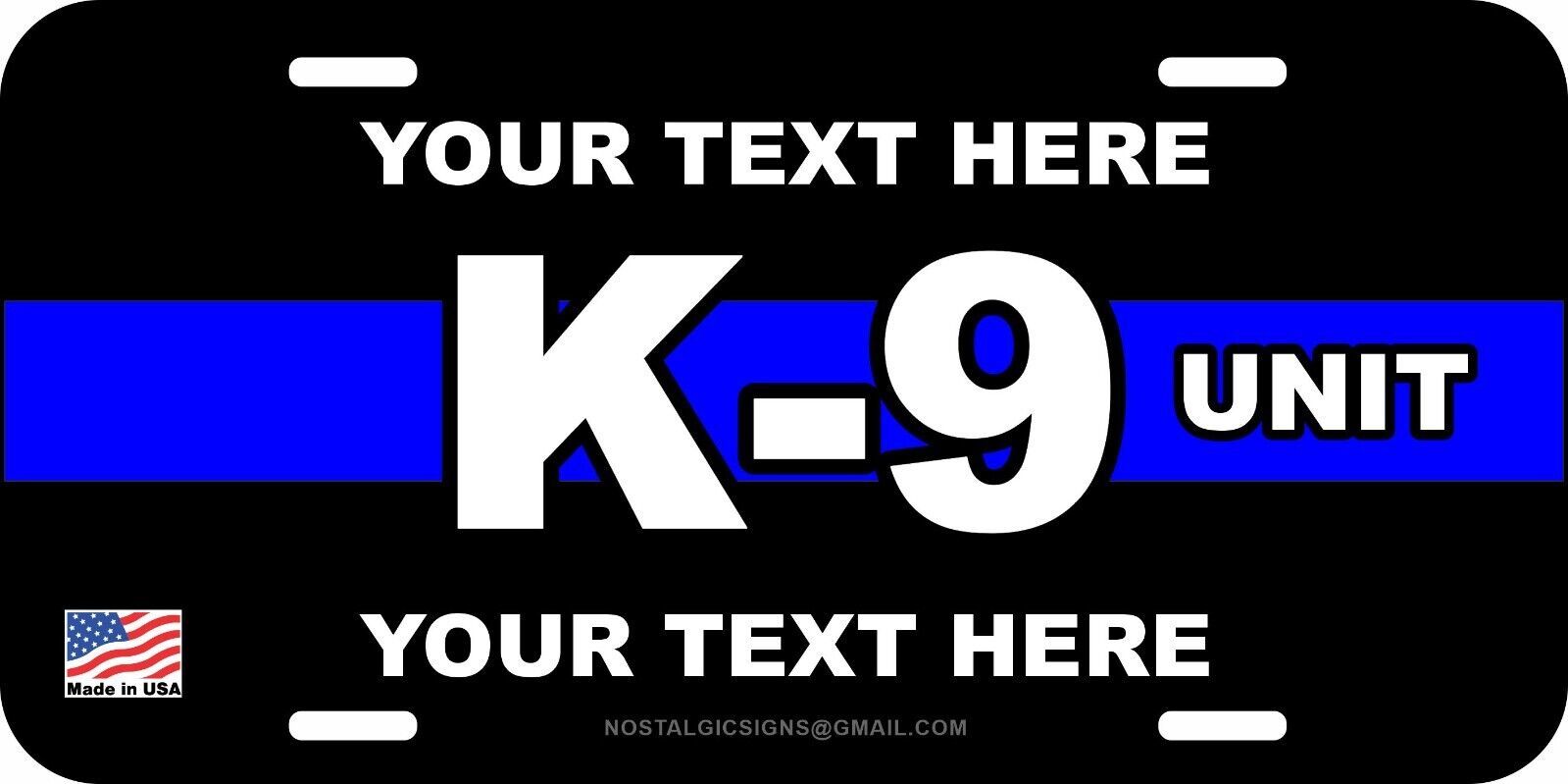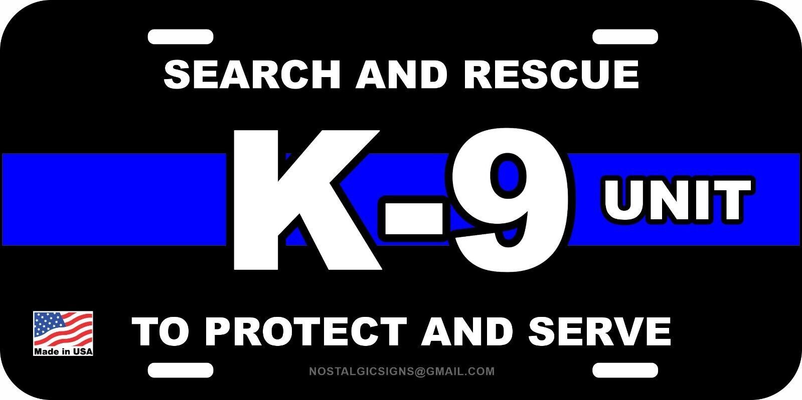 K9 K-9 UNIT DOG POLICE SEARCH AND RESCUE ALUMINUM METAL LICENSE PLATE TAG