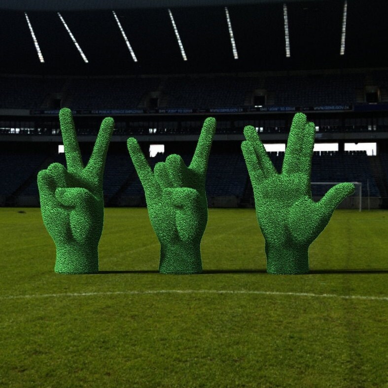 Outdoor Hands Topiary Green Figures covered in Artificial Grass Landscaping Scul