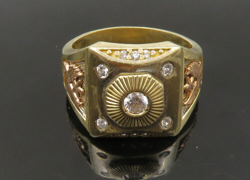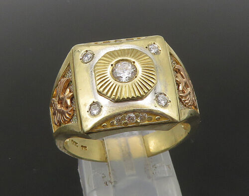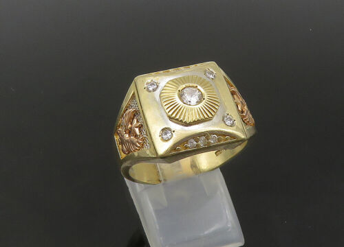 14K GOLD - Vintage Cubic Zirconia Two Tone Square Band Ring Sz 9.5 - GR194