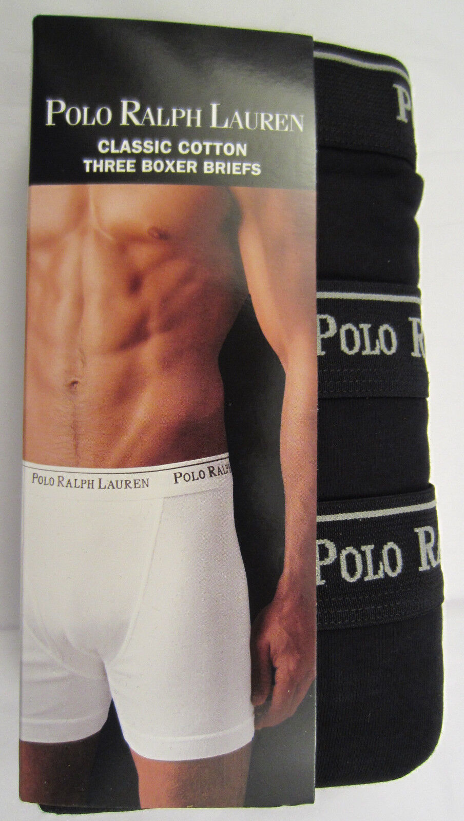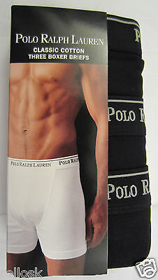 New 3-Pack of Authentic Ralph Lauren Polo Men's Black Boxer Briefs "Styles that goes beyond the basics - Modern design and everyday comfort" Each pack contains 3 boxer briefs. Luxurious 100% ringspun cotton. Signature woven logo waistband. Classic Fit. Color: Black Machine Washable. Imported. Available Sizes Waist Size S M L XL Inches 28-30 32-34 36-38 40-42 CM 71-76 81-86 91-97 102-107