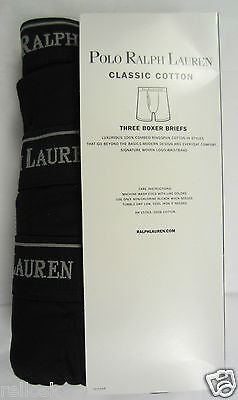 3 RALPH LAUREN POLO BLACK GRAY COTTON BOXER BRIEFS UNDERWEAR - S M L XL NWT
