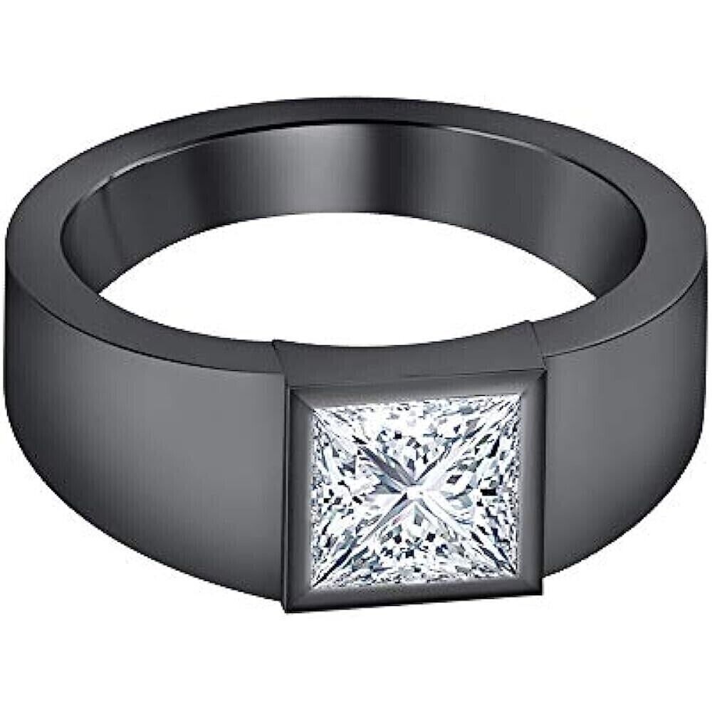 1Ct Princess Cut Lab-Created Diamond Men's Engagement Ring 14k Black Gold Plated