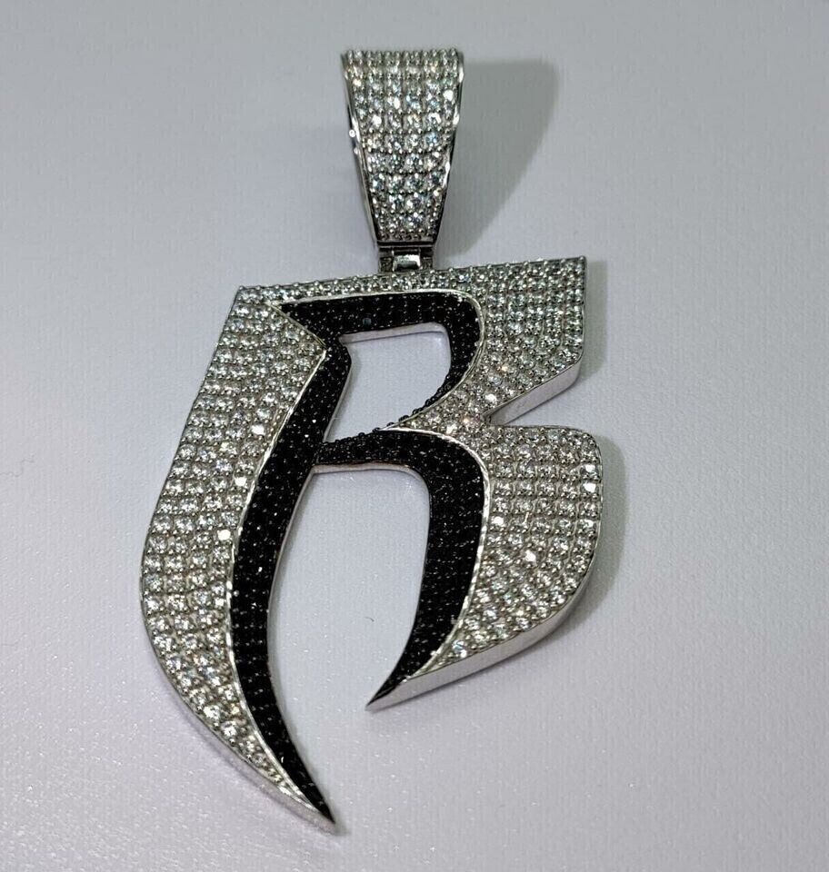 3.00 Ct Round Cut Lab-Created Diamond R Letter Pendant 14K White Gold Plated