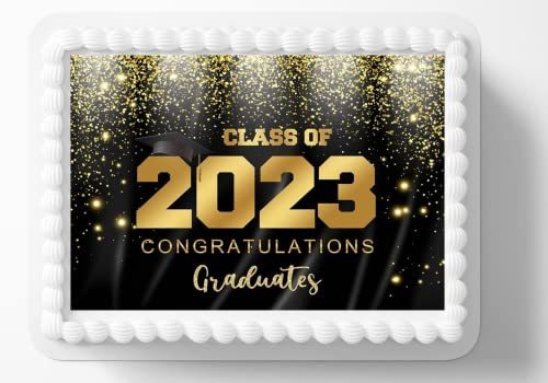 Black & Gold Class Of 2023 Graduation Grad Graduate Edible Image Edible Cake Top