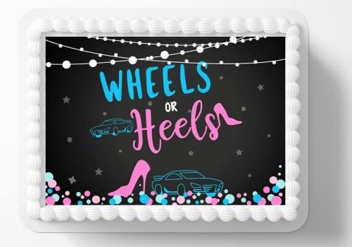 Wheels Or heels Gender Reveal Edible Image Edible Baby Shower Cake Topper Frosti