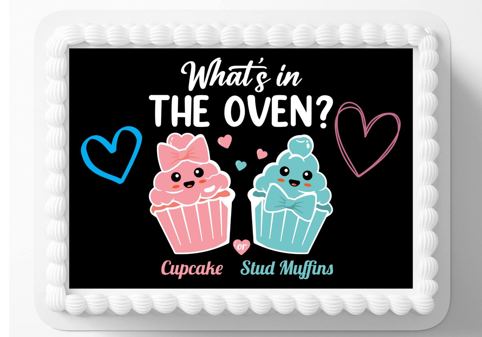 Gender Reveal Cupcake Or Stud Muffin Edible Image Edible Cake Topper Frosting Sh