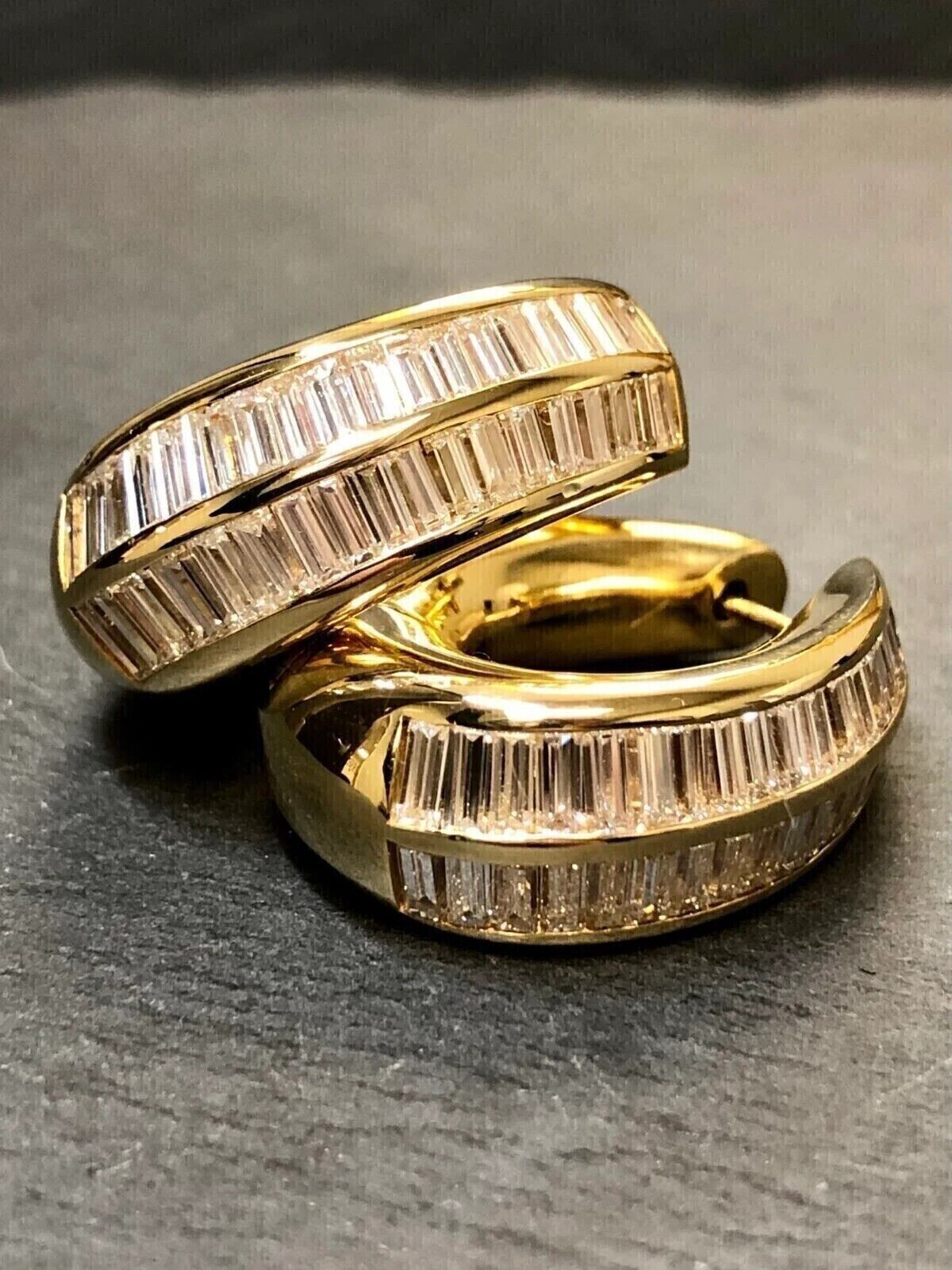 3Ct Baguette Cut Lab-Created Diamond Women Hoop Earrings 14k Yellow Gold Plated