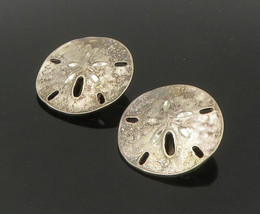 925 Sterling Silver - Vintage Sand Dollar Motif Non Pierce Earrings - EG11107