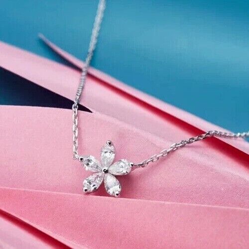 2Ct Pear Cut Lab-Created Diamond Flower Pendant 14k White Gold Plated Free Chain