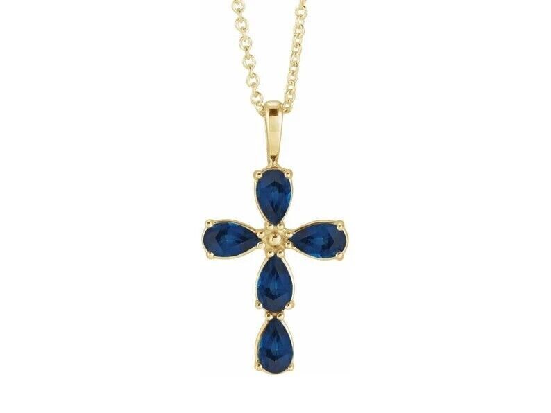 2Ct Pear Cut Blue Sapphire Women Cross Pendant 14k Yellow Gold Plated