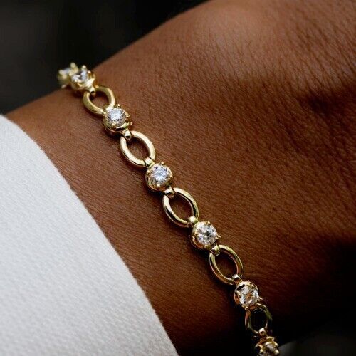 5Ct Round Cut Lab-Created Diamond Women Beauty Bracelet 14k Yellow Gold Plated