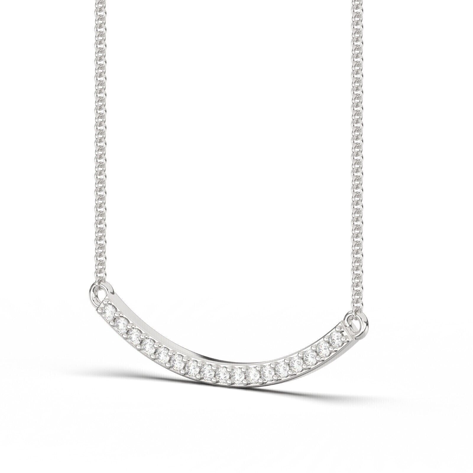 2Ct Round Cut Diamond U Bar Necklace Pendant 14k White Gold Plated Free Chain