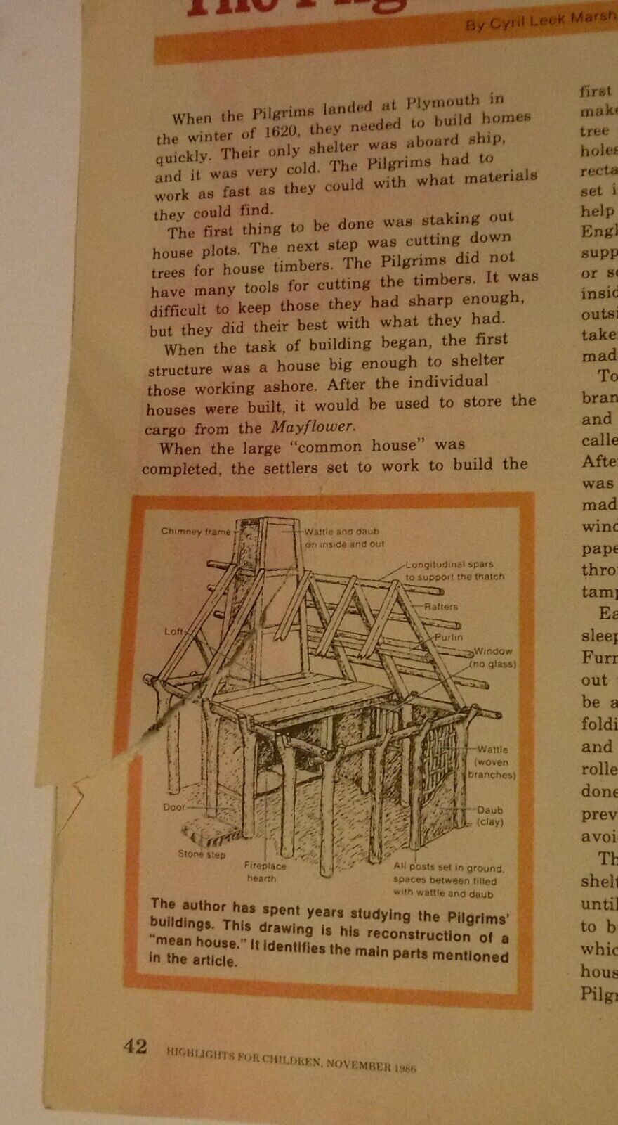 Highlights for Children Magazine November 1986 The Pilgrim's First Houses