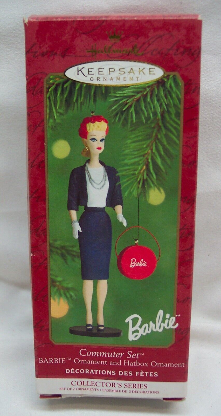This is a Keepsake "1959-1960" Version BARBIE COMMUTER CHRISTMAS HOLIDAY ORNAMENT SET. It is in great condition with original box. Made by HALLMARK in 2000. Barbie is 4 1/2 inches tall. The hatbox is a small separate ornament that comes with her. The date is not on the ornament, just on the bottom. Combine auctions to save on shipping. Please contact me if you need to make other payment arrangements. EAG