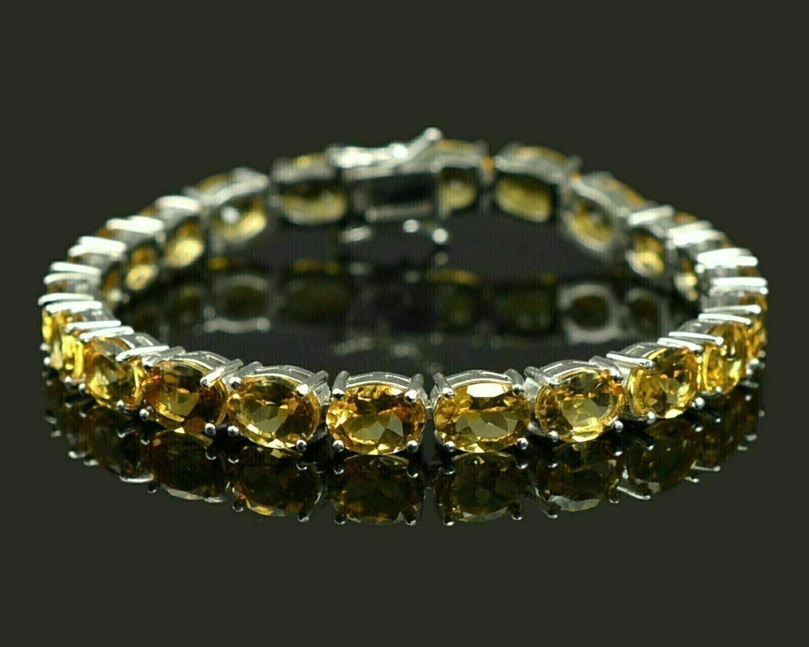 5Ct Oval Cut Lab-Created Citrine Women Tennis Bracelet 14k White Gold Plated