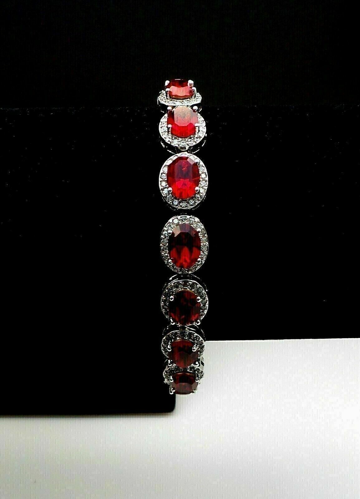 6Ct Oval Lab-Created Ruby Women Engagement Tennis Bracelet 14K White Gold Plated