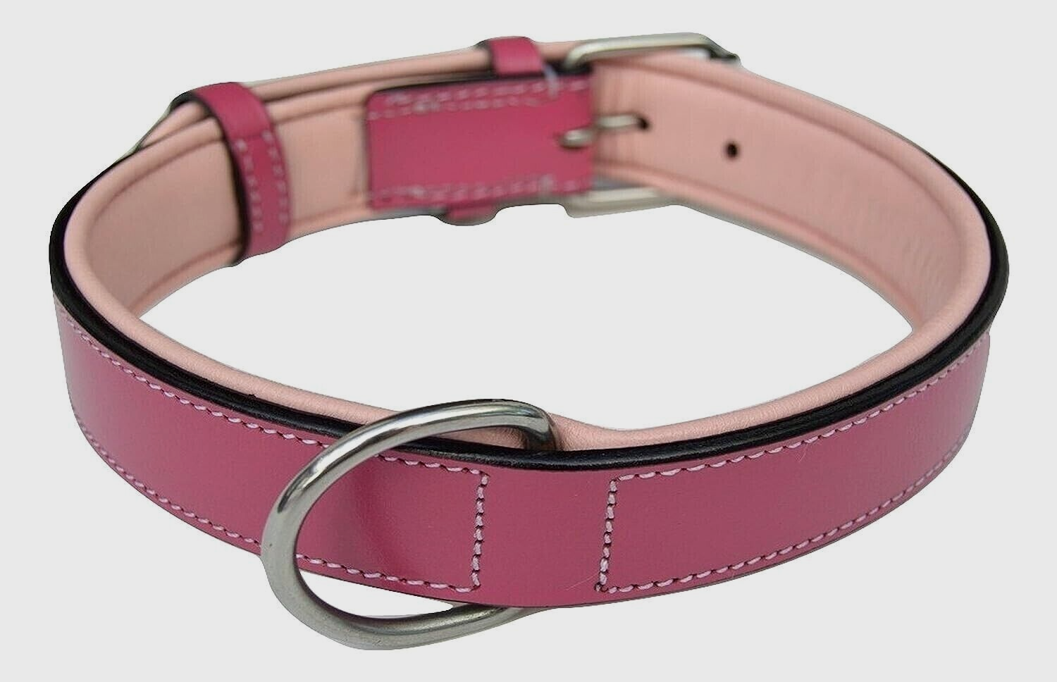 Shwaan Padded Genuine Leather Dog Collar Pink Colour Unisex Pack of 10 Collars