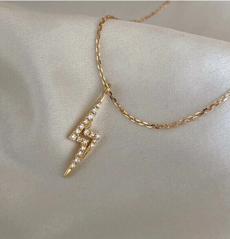 1.20 Ct Round Lab-Created Diamond Lightning bolt Pendant 14k Yellow Gold Plated