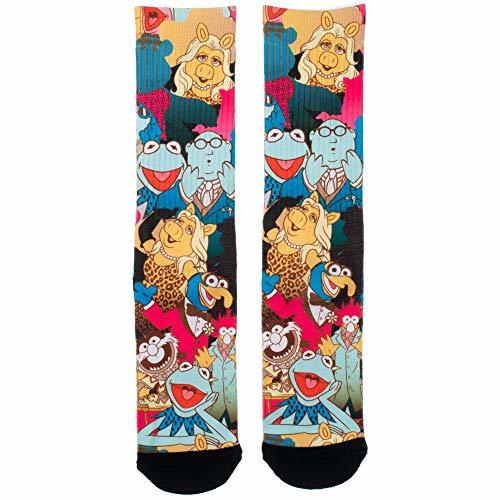 Product description: Disney The Muppets Cartoon Faces Collage Sublimated All Over Print Men's Crew Socks. Design features iconic Muppet characters Kermit the Frog, Miss Piggy, Gonzo, Beaker, Animal and Dr. Bunsen Honeydew printed vividly on a high quality comfortable crew sock.